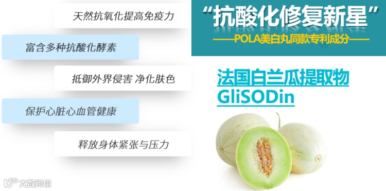 法国白兰瓜中提取的Glisodin超氧化歧化酶是纯天然抗氧化成分,在抗酸化氧化、消除自由基和美容淡斑等方面具有显著效果。