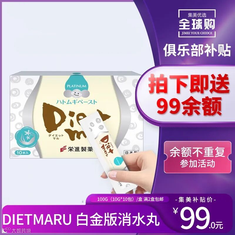 【产品名称】Dietmaru白金版消水丸 【适用人群】头面部出油长痘、便秘胀气、虚胖浮肿、口臭流口水、脱发掉发、黑眼圈眼袋、睡眠质量差、湿气重等人群