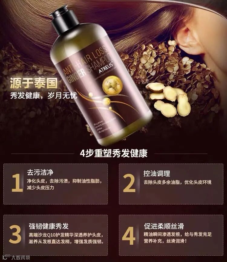 【试用补贴】泰国ATREUS生姜洗发水400ML/2瓶