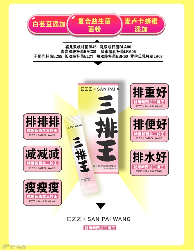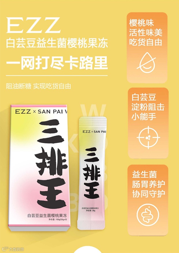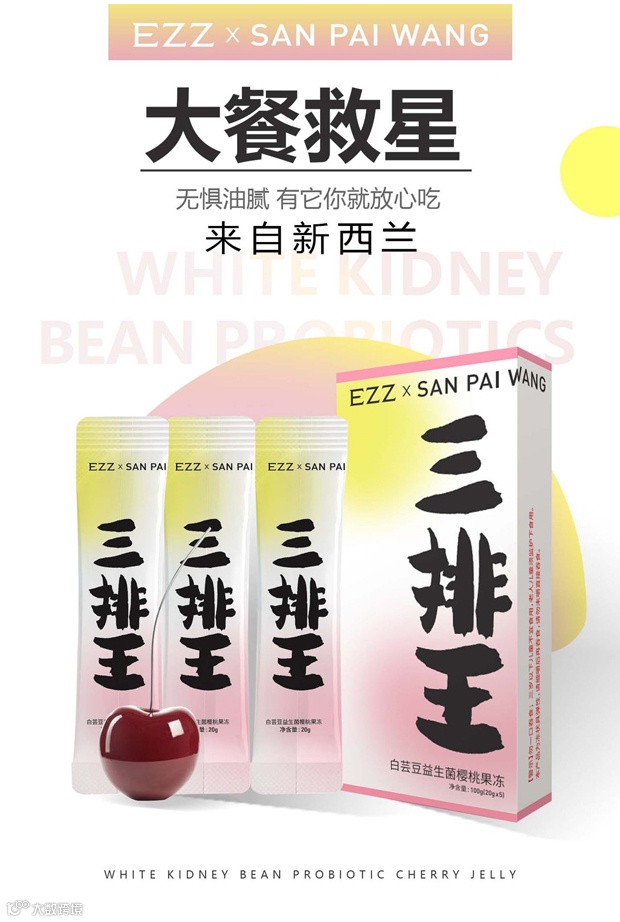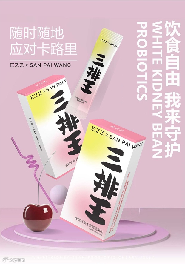 【粉丝群补贴·5盒包邮】EZZ×三排王白芸豆益生菌樱桃果冻100g(20g*5条)/盒 原价:29.9元 粉丝群补贴价:19.9元