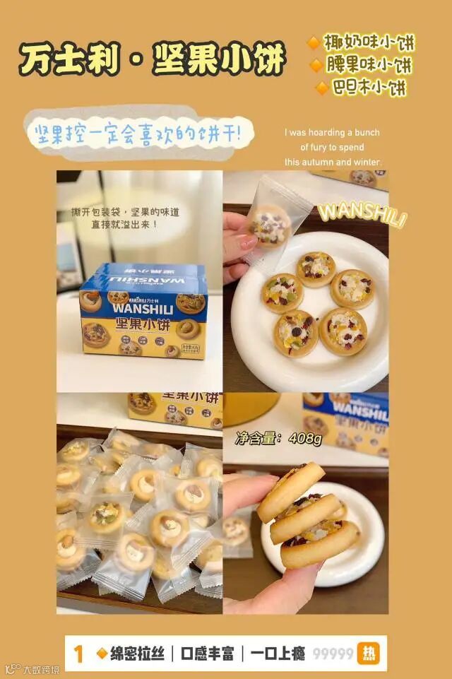 【粉丝群补贴】WANSHILI 万士利·坚果小饼408g/箱 混合口味 原价:49元 粉丝群补贴价:29.9元