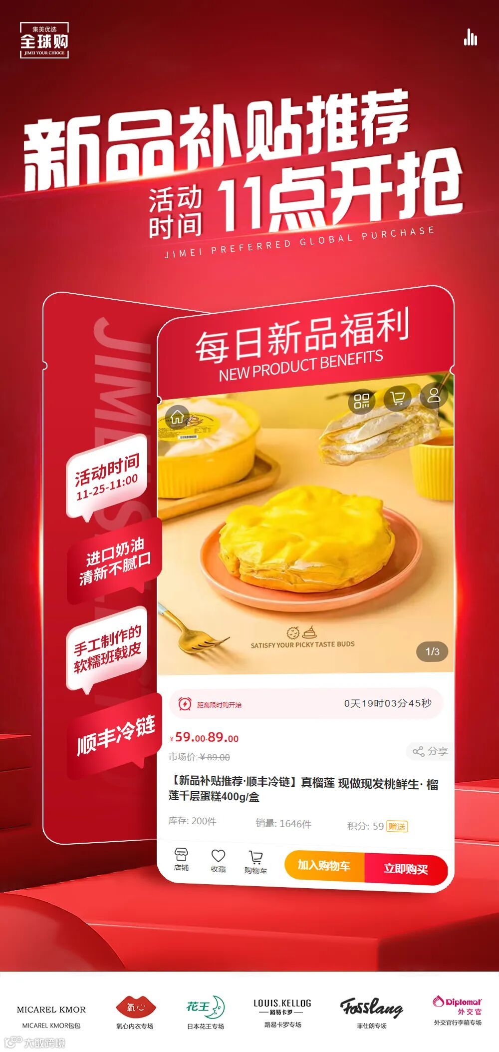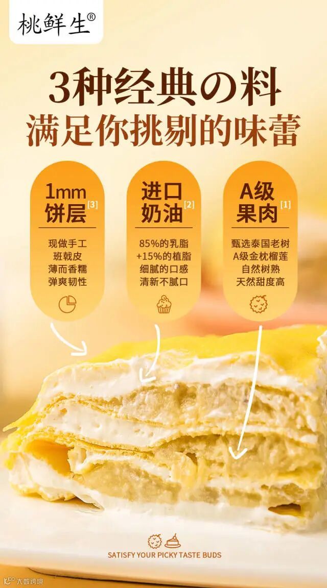 【新品补贴推荐·顺丰冷链】真榴莲 真爆浆 现做现发桃鲜生· 榴莲千层蛋糕400g/盒 原价:89元 粉丝群补贴价:59元起