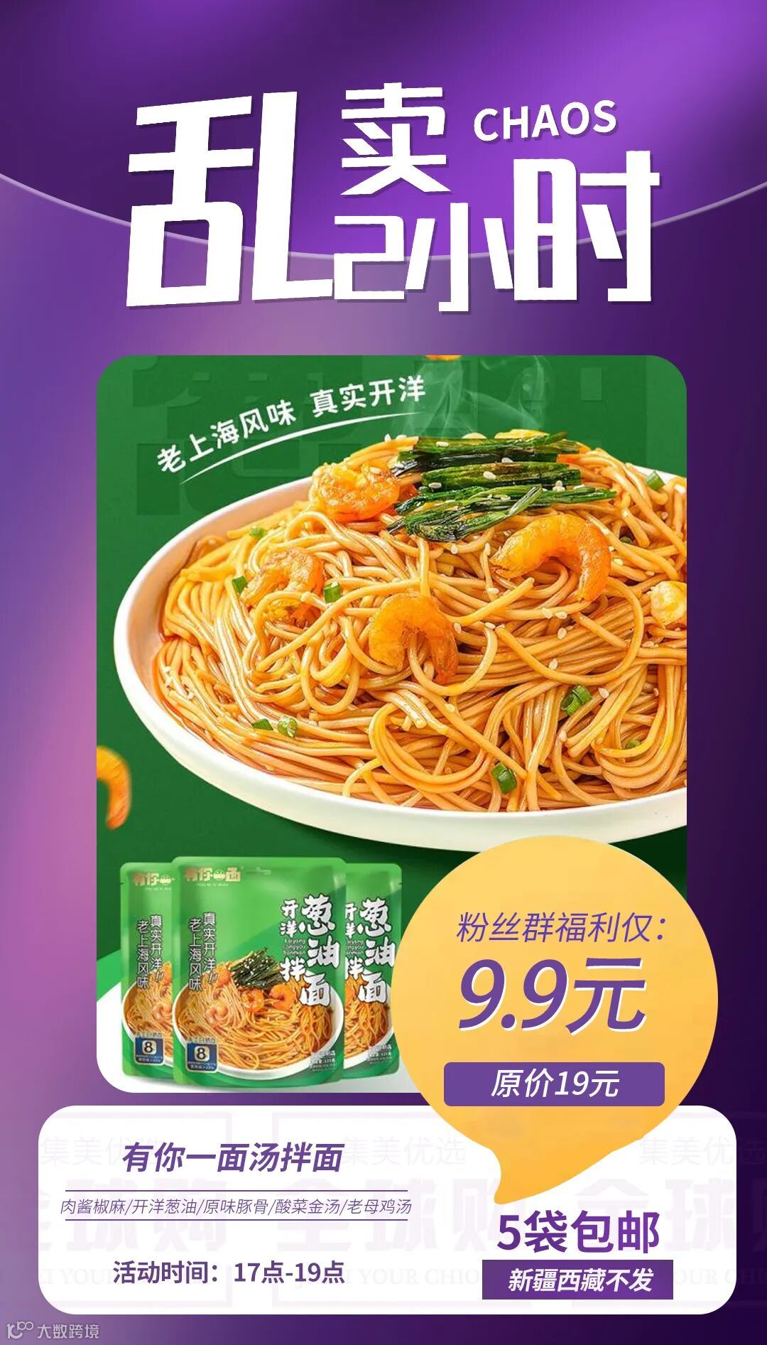 【乱卖2小时·5袋包邮】有你一面汤拌面(肉酱椒麻/开洋葱油/原味豚骨/酸菜金汤/老母鸡汤) 原价:19元 粉丝群补贴价:9.9元