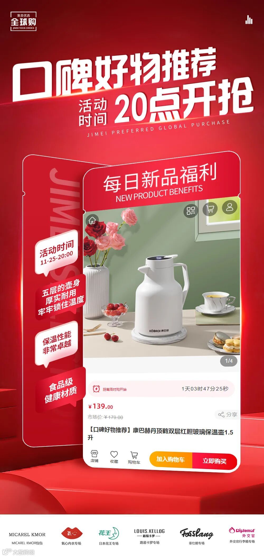 【口碑好物推荐】康巴赫丹顶鹤双层红胆玻璃保温壶1.5升 原价:179元 粉丝群补贴价:139元