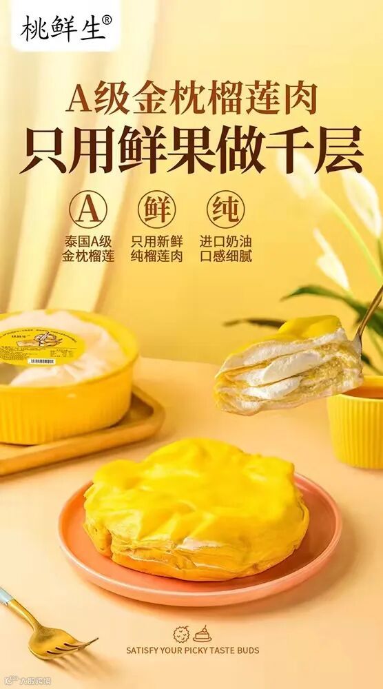 3、榴莲千层收到后不马上食用 请第一时间放入冰箱冷冻保存