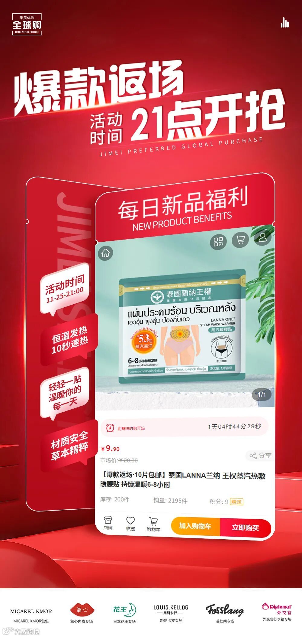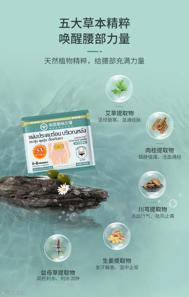 【爆款返场·10片包邮】泰国LANNA兰纳 王权蒸汽热敷暖腰贴 持续温暖6-8小时 原价:29元 粉丝群补贴价:9.9元