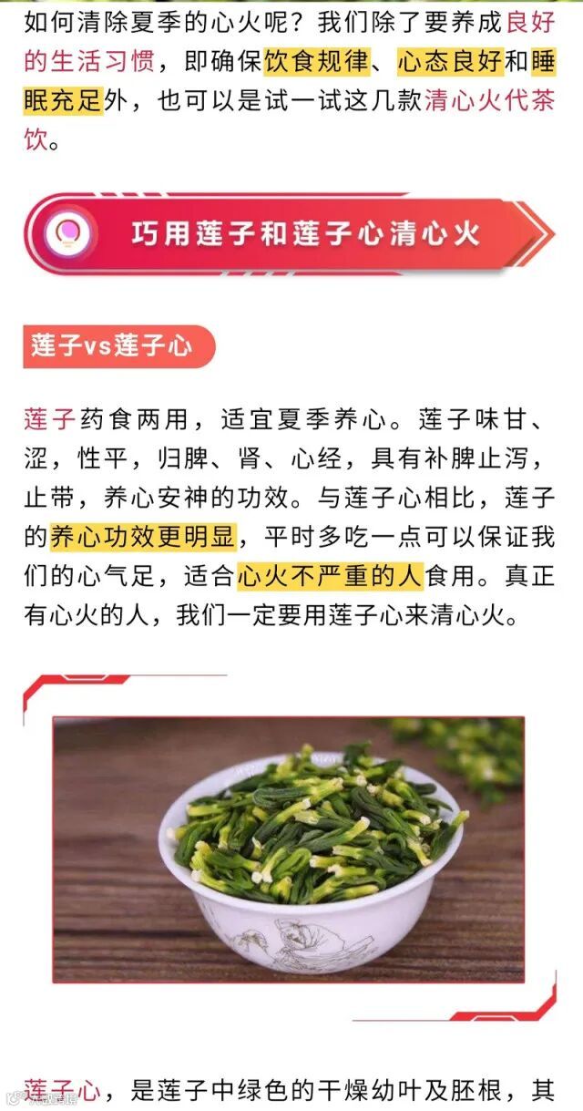 3.对于火心旺盛引起的口臭,便秘,眼睛红肿,口腔溃疡推荐饮用,喝莲子心茶的效果有时比用药都见效,药食同源