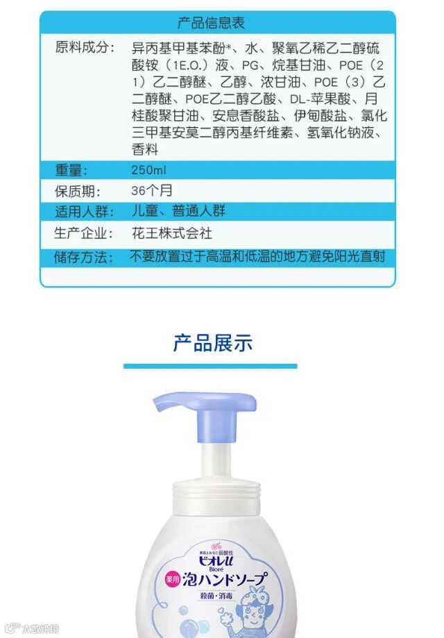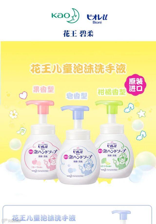 日本进口 花王儿童泡沫洗手液杀菌抑菌250ml/瓶 原价:49元 粉丝群补贴价:29.9元