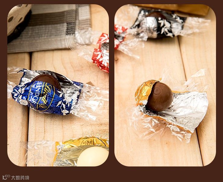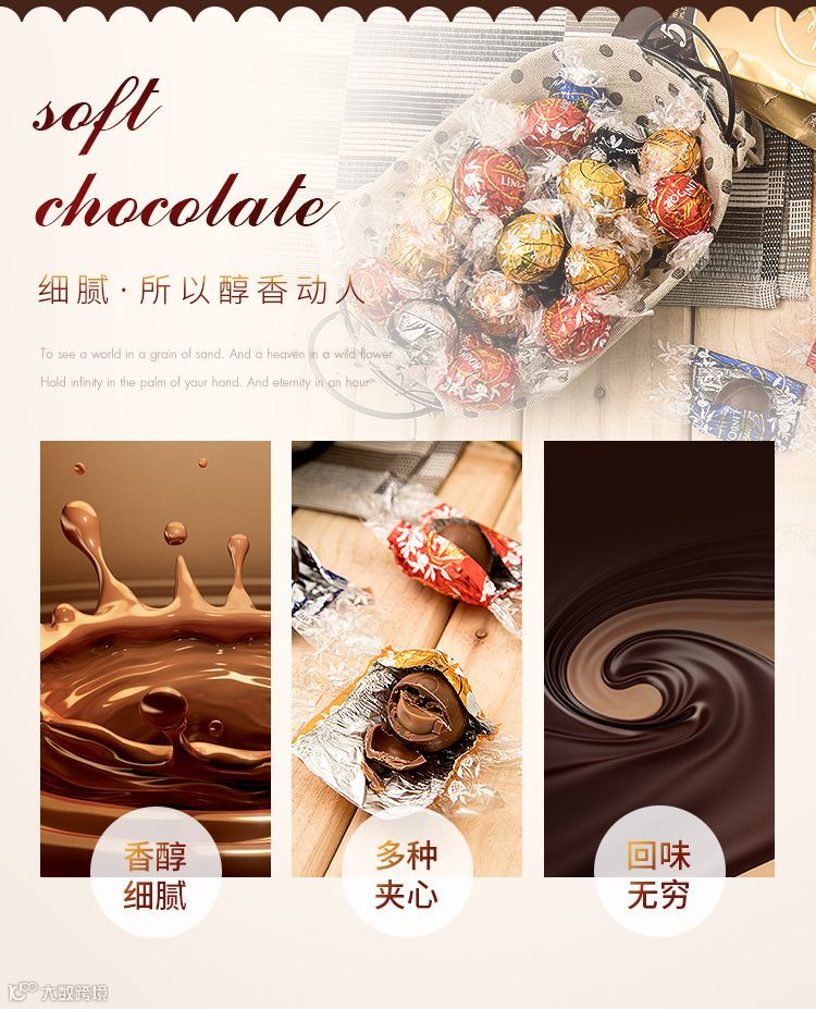 浓郁的巧克力在巧克力纸中躁动,带给你醇厚的可可芳香,轻轻咬开软心巧克力的外壳,幼滑的软心缓缓融化于心,缔造细腻回甘的美味享受~