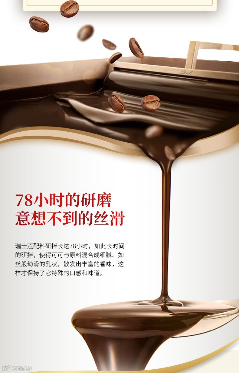 瑞士莲巧克力的味道源于对每一颗优越可可豆豆的严格筛选,可可豆源于南美洲热带林,美国加州的扁桃仁,土耳其的榛子,原地采摘,鲜香浓郁~