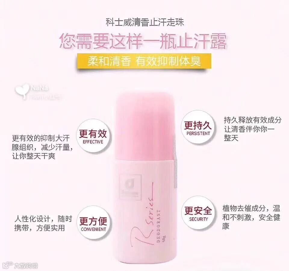 科士威止汗露 科士威香身剂 香香的止汗走珠。特别是在夏天,身上难免有汗臭味,有时会弄的很尴尬,这款可以涂抹在腋下,能保持干爽一整天,散发自然香味,止汗效果很赞,夏天必备。