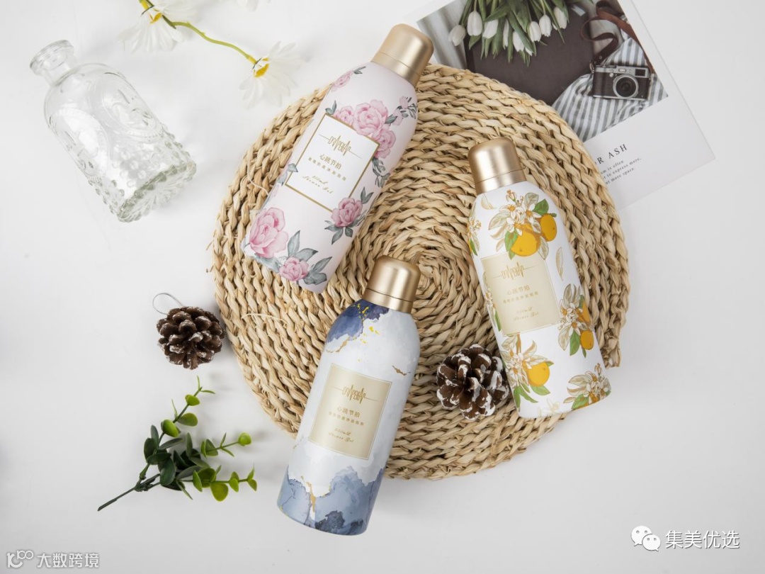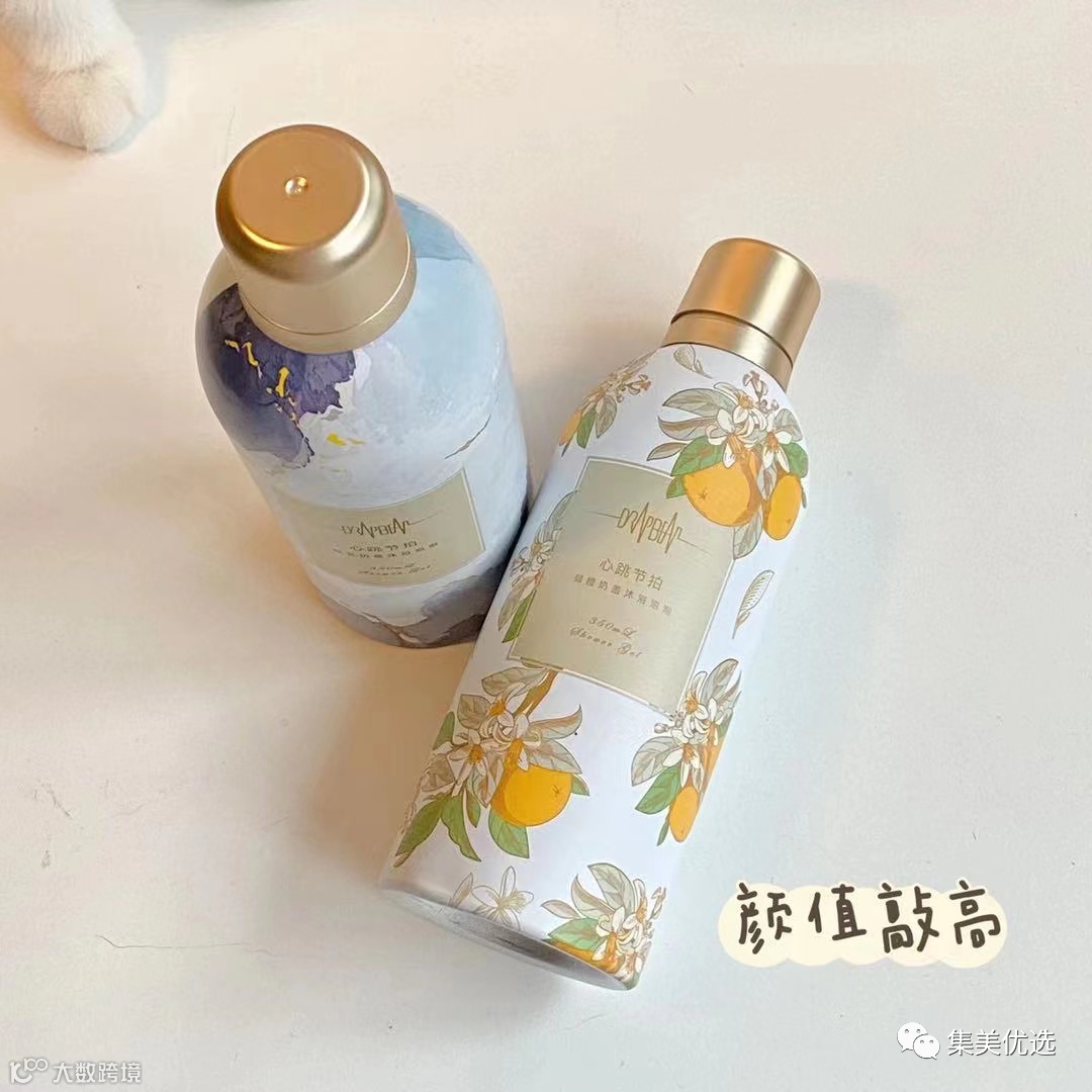 8.颜值超高,复古镀金瓶盖,舒适治愈的玫瑰/海浪/橙果花纹。铝制瓶,能更好地保存料体,减少了沐浴液跟瓶子之间的化学反应,更健康!