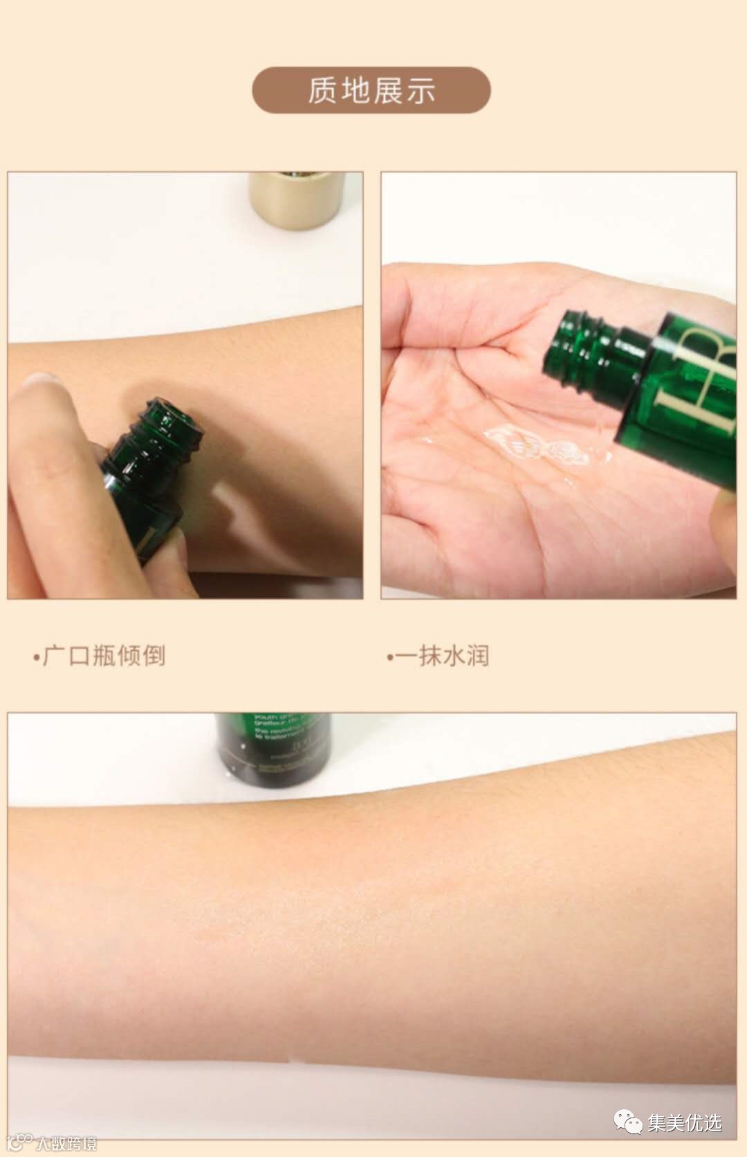 淡淡的清香气味,质感清爽不油腻,秉持hr家一贯的高贵路线,结合绿宝瓶系列,对改善痘痘肌肤,暗黄粗糙,效果明显。
