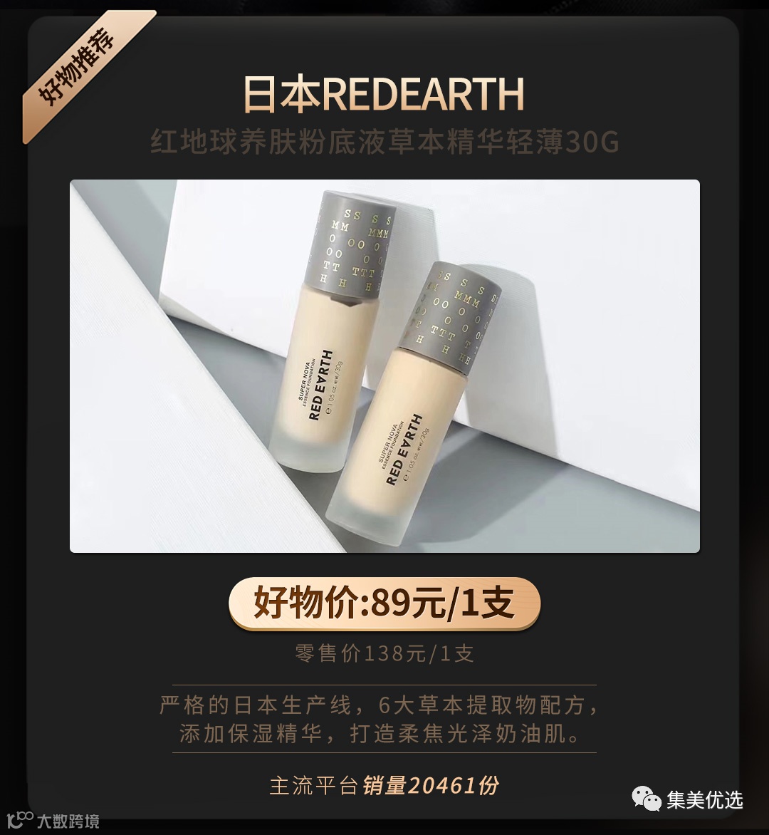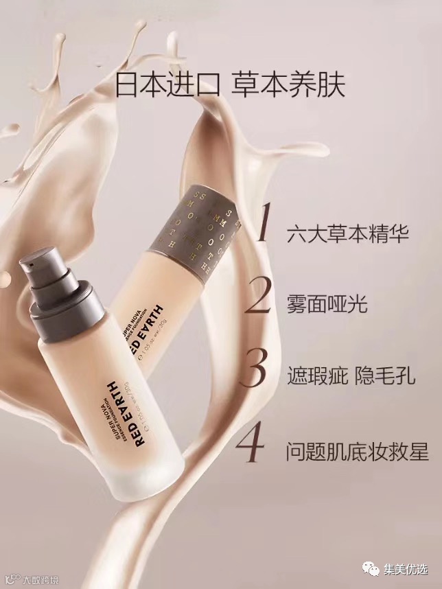 Red Earth 红地球粉底,澳洲品牌,严格的日本生产线,6大草本提取物配方,添加保湿精华,打造柔焦光泽奶油肌,李佳琦强烈推荐,销量3万+,平价开挂断货王,控油遮瑕力强,痘痘肌挚爱,干皮亲妈,能养肤的粉底液。