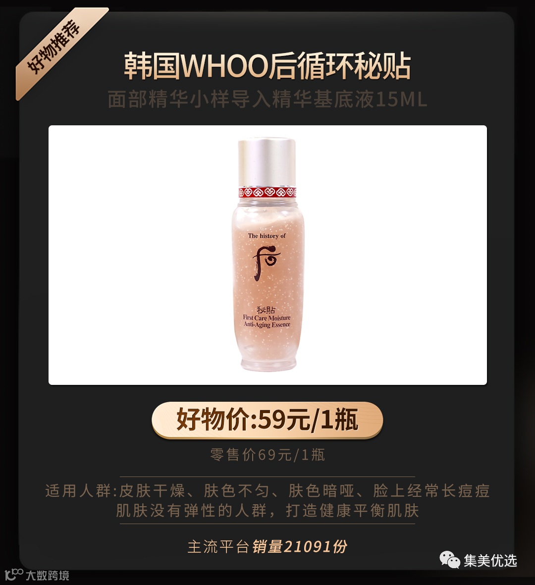 今天开团的是15ml小样,只要59元,你就能体验宫廷级保养。