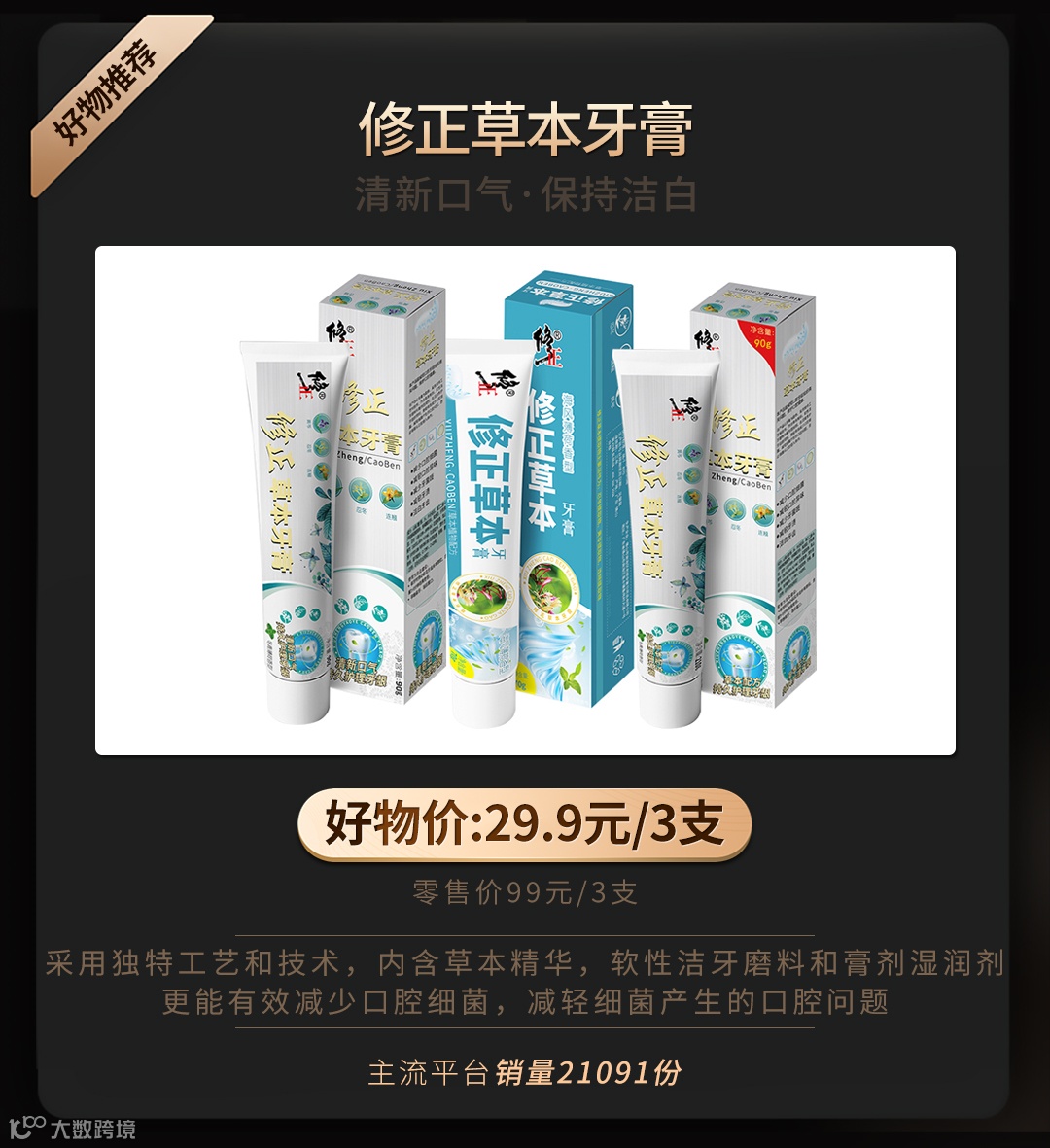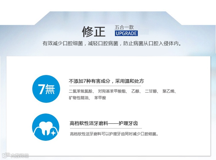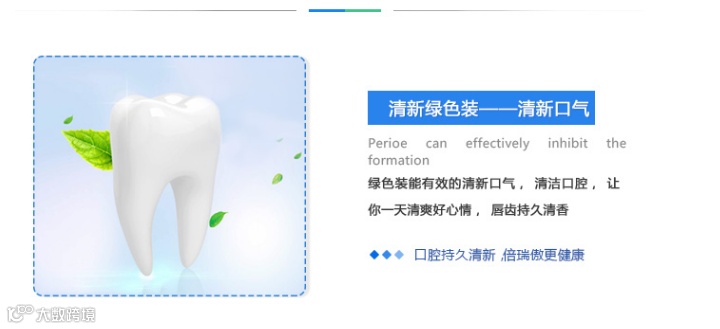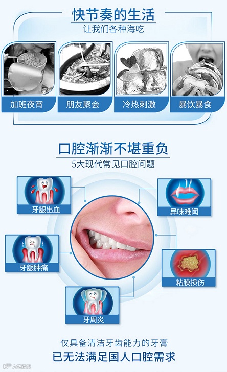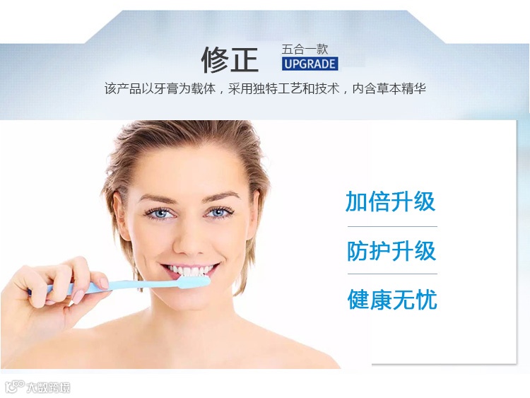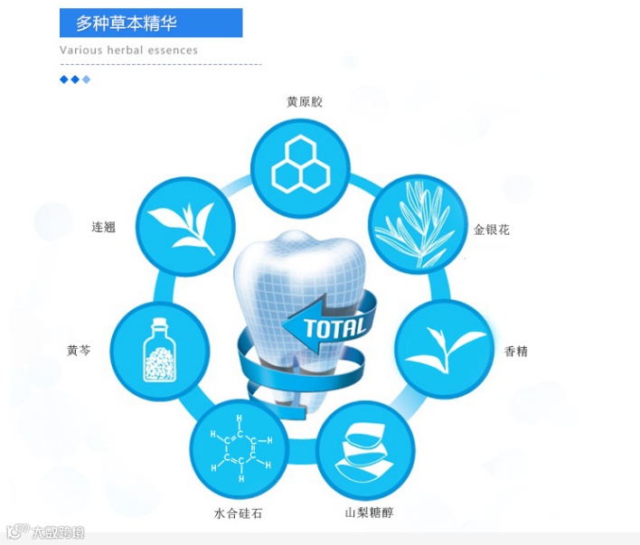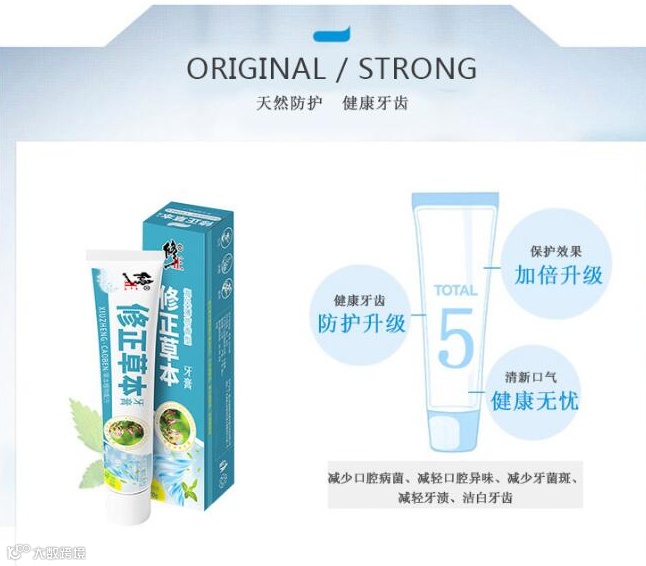 该产品以牙膏为载体,采用独特工艺和技术,内含草本精华,软性洁牙磨料和膏剂湿润剂,在日常养护牙齿同时,更能有效减少口腔细菌,减轻细菌产生的口腔问题,防止细菌从口腔侵入体内。