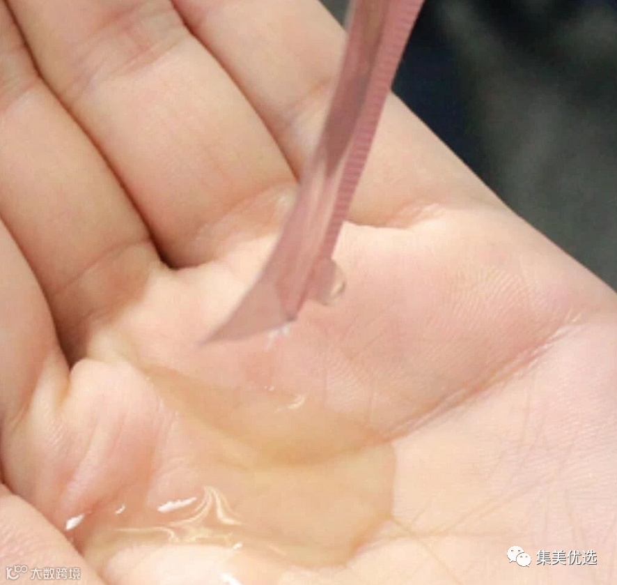 清澈透明的质地,流动性强,涂抹几下就被皮肤“嗖”得吃进去了,吸收很快。