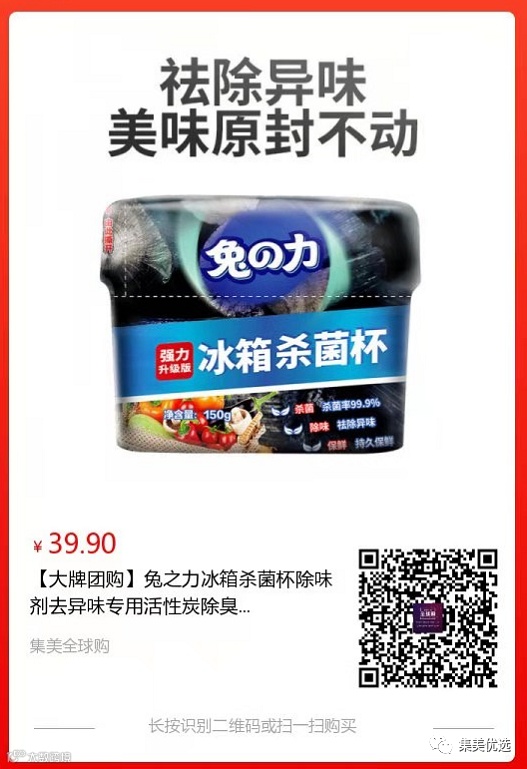 【大牌团购】兔之力冰箱杀菌杯除味剂 150克/盒 4盒 原价:59元 SVIP福利补贴价:29.9元 冰箱作为储备美食的地方可以显示一家的生活质量