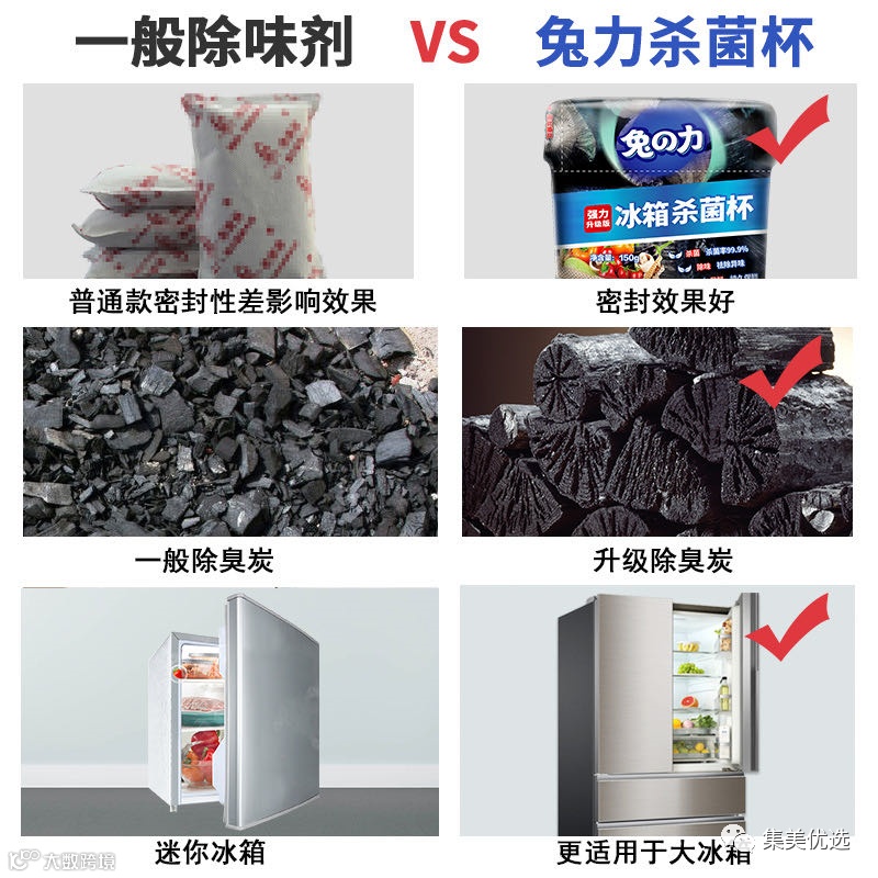 与普通的杀菌杯不同,兔の力冰箱杀菌杯使用“长备炭”作为吸附材料