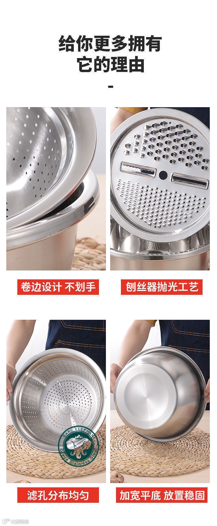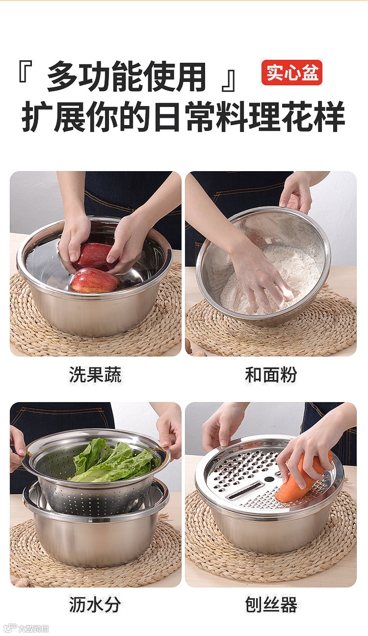 【特点】:能抛丝,能当盆,能洗菜,能装汤,能和面,能腌肉