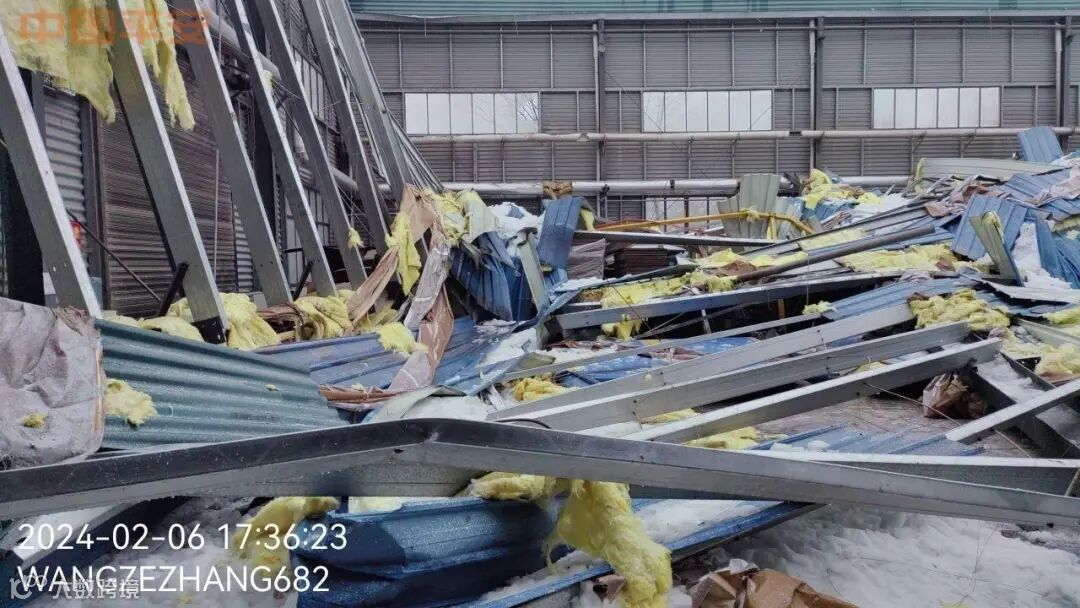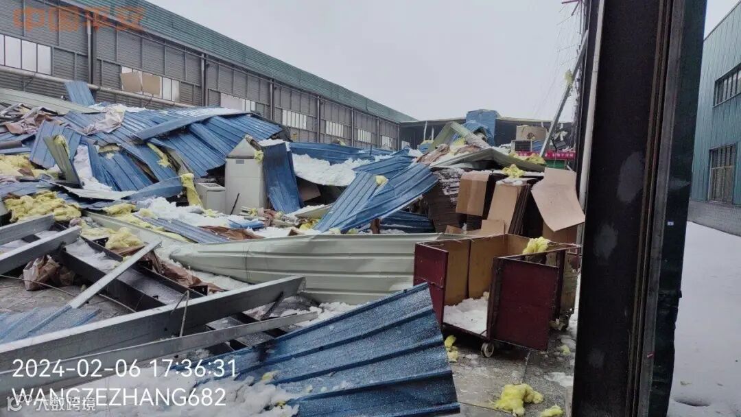 受损原因: 积雪压塌屋顶,纸张淋湿