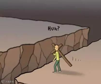 啊哈!谁料,前边忽然出现了一个又深又宽的沟壑!沟上没有桥,周围也没有路。也没有蜘蛛侠或者超人出来解救他…