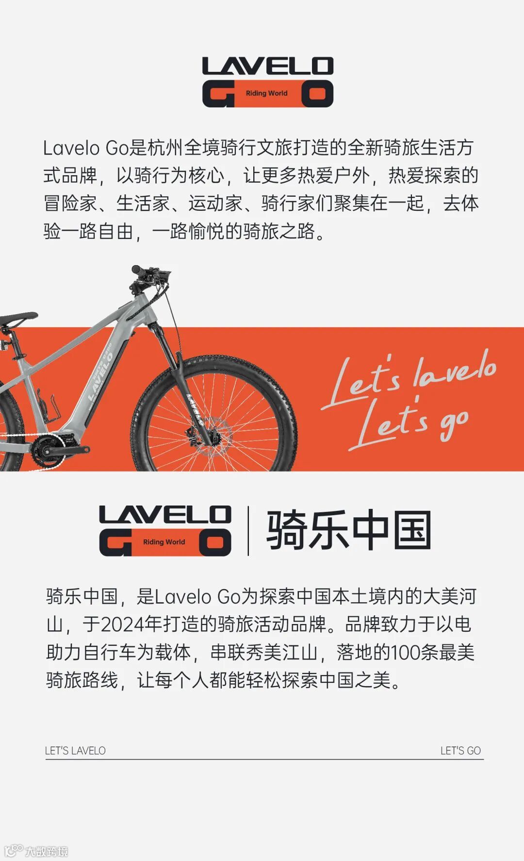Lavelo Go 是杭州全境骑行文旅打造的全新骑旅生活方式品牌,以骑行为核心,让更多热爱户外,热爱探索的冒险家、生活家、运动家、骑行家们聚集在一起,去体验一路自由,一路愉悦的骑旅之路。