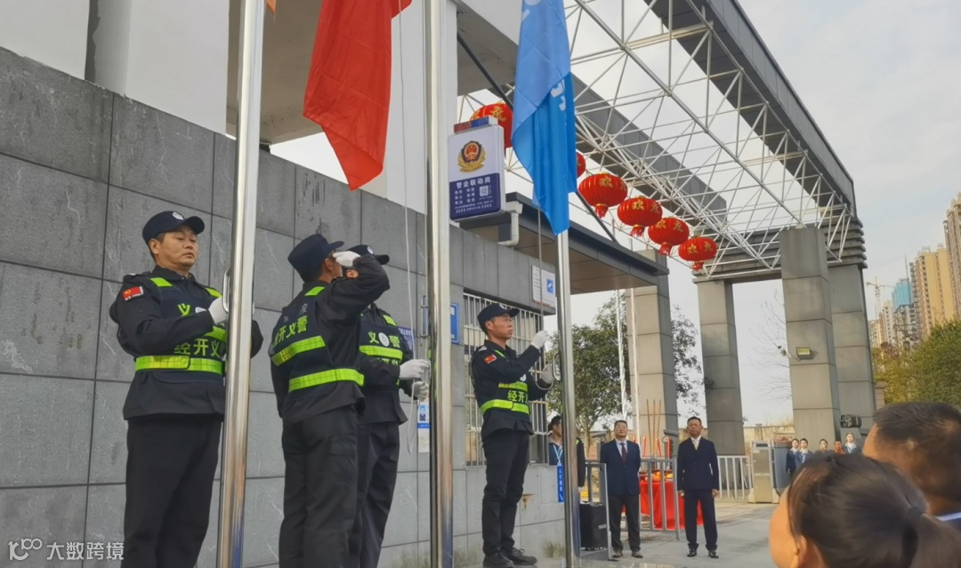 龙董宣布升旗仪式的开始:升国旗、奏国歌,全体人员面向国旗行注目礼。