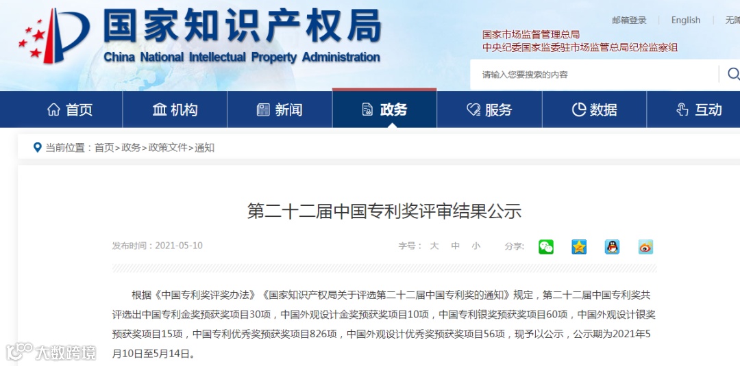 中国专利奖,是中国唯一的专门对授予专利权的发明创造给予奖励的政府部门奖,得到联合国世界知识产权组织(WIPO)的认可,不仅是我国专利领域的最高奖项,在国际上也具有一定的影响。