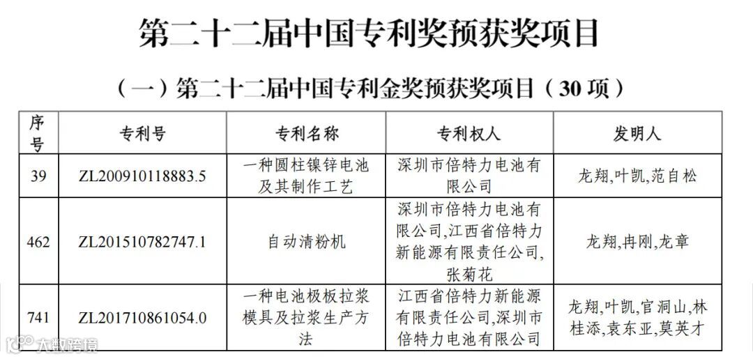 回顾过去,倍特力的“一种高温失效橡胶”发明专利被国家知识产权局评为2016年“中国专利优秀奖”,“电池负极制作系统”发明专利于2018年被评为“中国专利优秀奖”,“一种恒压电池”发明专利于2020年被评为“中国专利优秀奖”。加上近期新申报的三个专利再次全部通过,BPI一共获得六个“中国专利优秀奖”。
