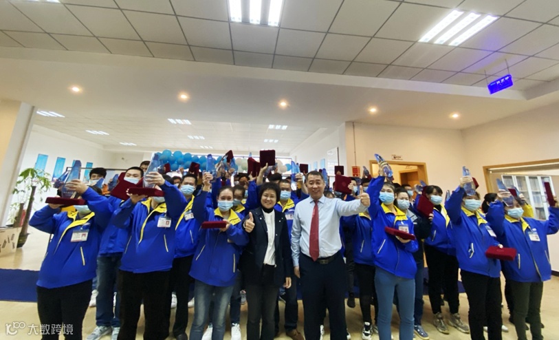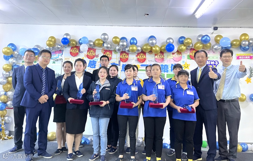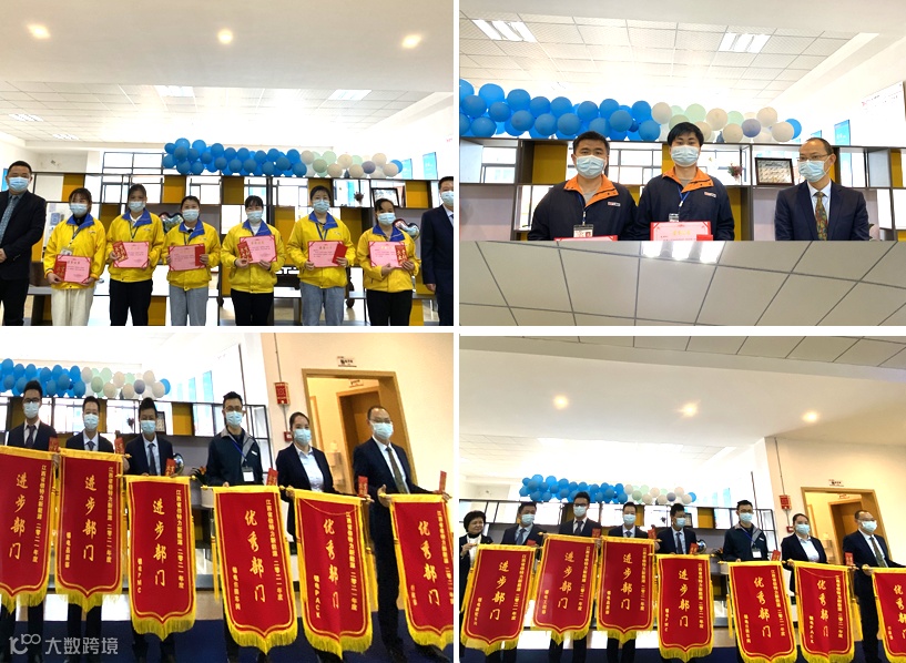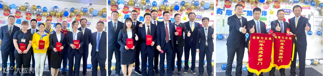 江西公司给2021年度优秀员工、优秀职员、优秀组长、优秀品管、优秀应急队员、优秀部门、进步部门、优秀部门颁发荣誉证书和奖金,并与总经办领导合影留念。