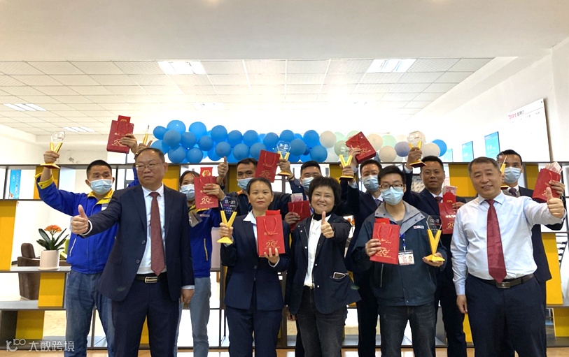 趁20周年庆之际,深圳公司给2021年度优秀职员、应急队员、品管员、组长,年度特别贡献业务、优秀业务、进步业务员,年度优秀部门、进步部门,颁发荣誉证书和奖金,并与总经办领导合影留念。