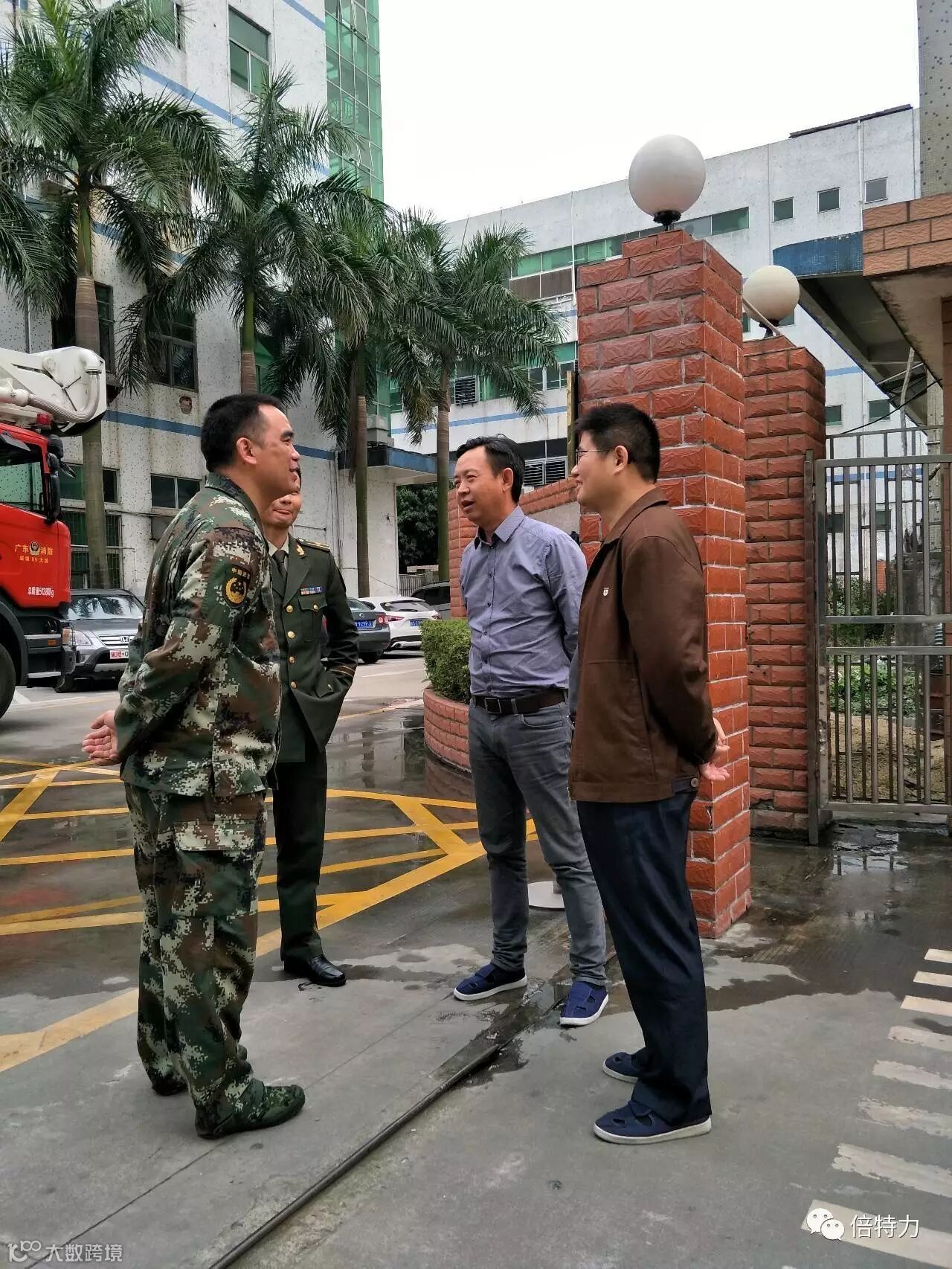 深圳倍特力电池有限公司董事长、镍电事业部总经理也和深圳龙华新区分队、中队及龙华大队队长进行了亲切友好的交流,对他们的专业演习,赞不绝口,让我们公司消防队以他们为榜样,向高专业消防队看齐。