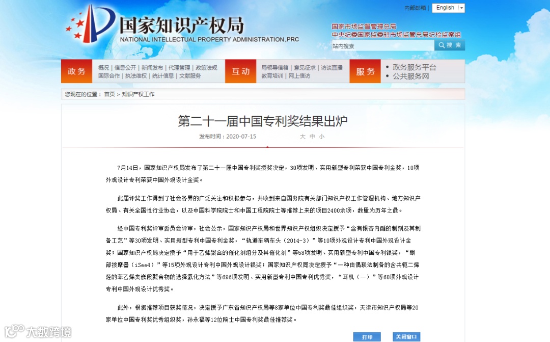 2020年中国申请发明专利超百万件,每年除了行政推荐外,必须要有两名院士联名推荐或者国家级别的行业协会推荐才拥有资格申请,每年有几万家企业、高校、研究院所及个人申报,优秀奖的获奖机率是远远低于万分之三。