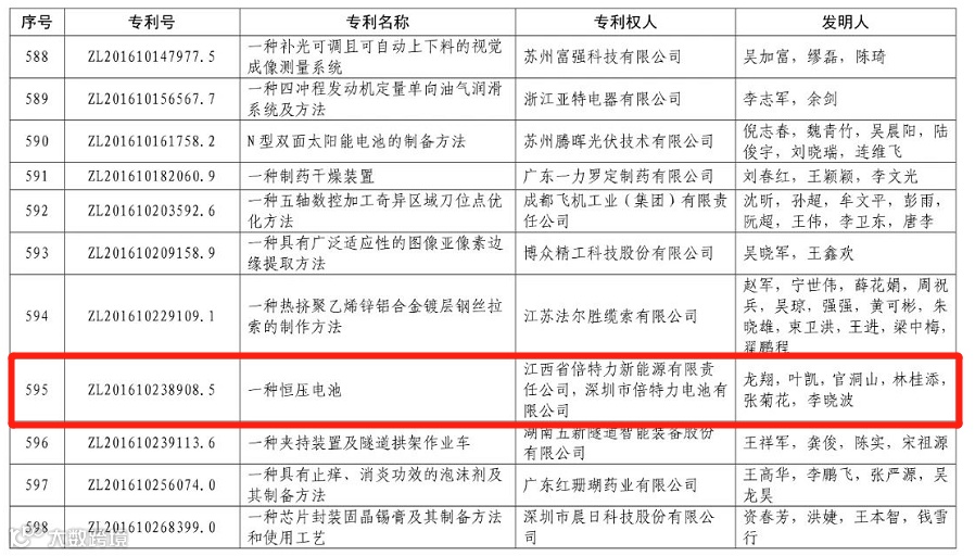BPI倍特力注重研发与创新,公司自2002年成立以来,在董事长的带领及全体倍特力人的共同努力下,拥有充电电池专利累计达100多项,其中“一种高温失效橡胶”发明专利被国家知识产权局评为2016年“中国专利优秀奖”,“电池负极制作系统”发明专利被国家知识产权局评为2018年“中国专利优秀奖”。时隔两年,倍特力人再次发力,公司申请的“一种恒压电池”发明专利再次获得2020年“中国专利优秀奖”。
