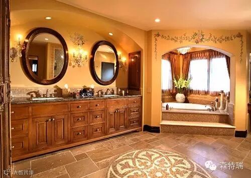 铺满仿古砖的卫生间,留给人的也尽是弥漫着地中海风的感觉。