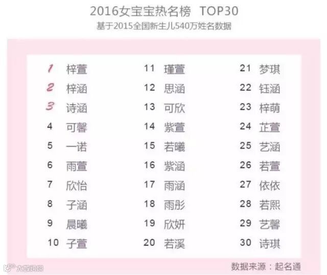 最后小编再给你们提个醒 2016的宝宝热名榜是这样滴