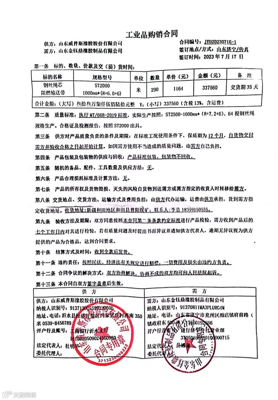 标的规格: 1000*6.0(6+8)*290m