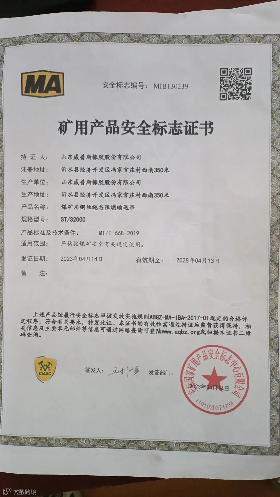 MT668阻燃钢丝绳输送带ST/2000 [290米]
