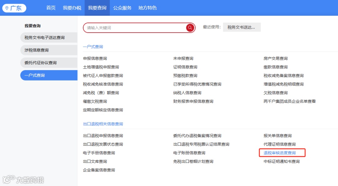 税务部门审核完成后,就可以登录新电子税局,点击【我要查询】-【一户式查询】-【退税审核进度查询】,查询《税务事项通知书》