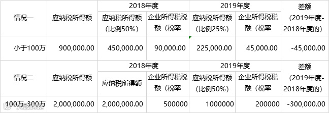2. 年应纳税所得额由“低于100万元”,调整为两个区间“不超过100万”和“100万到300万之间”。