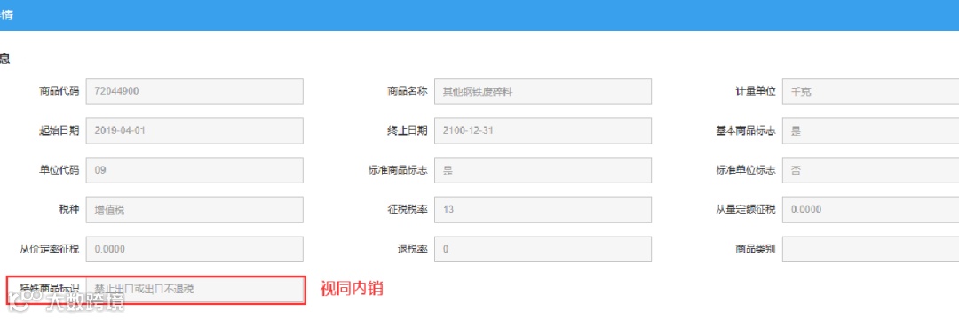 2.若特殊商品标识为“1”,有征税税率须视同内销缴纳增值税。