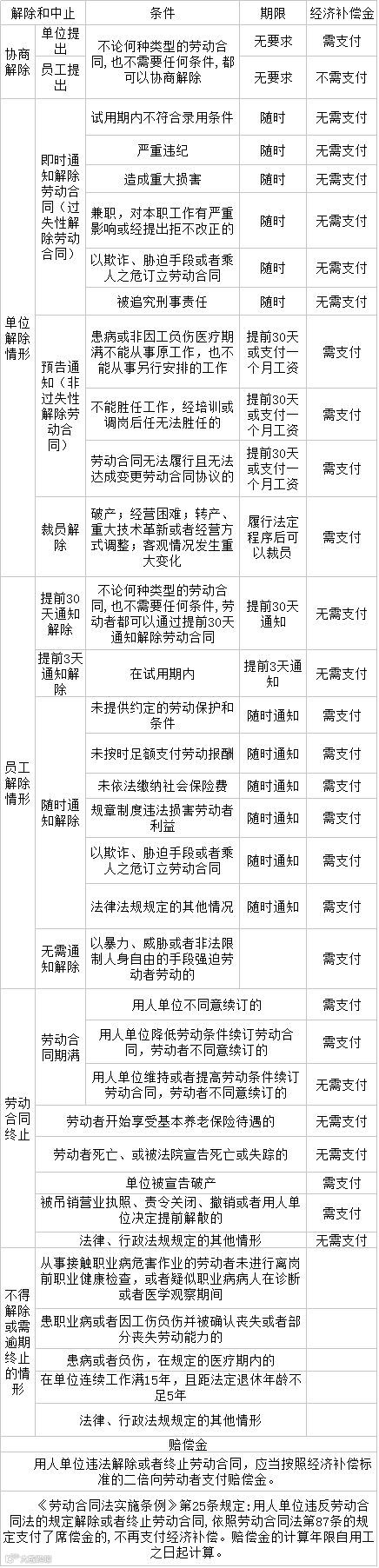 今天,给大家的带来的干货内容就是劳动合同解除以及赔偿的一览表。