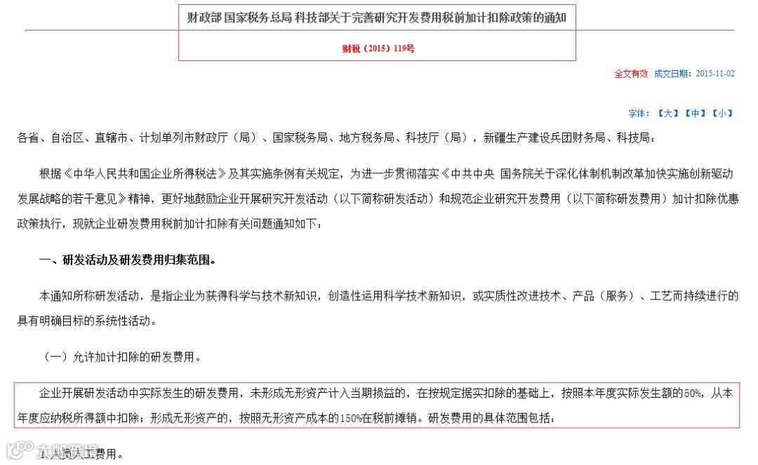 财税〔2015〕119号规定,企业开展研发活动中实际发生的研发费用: