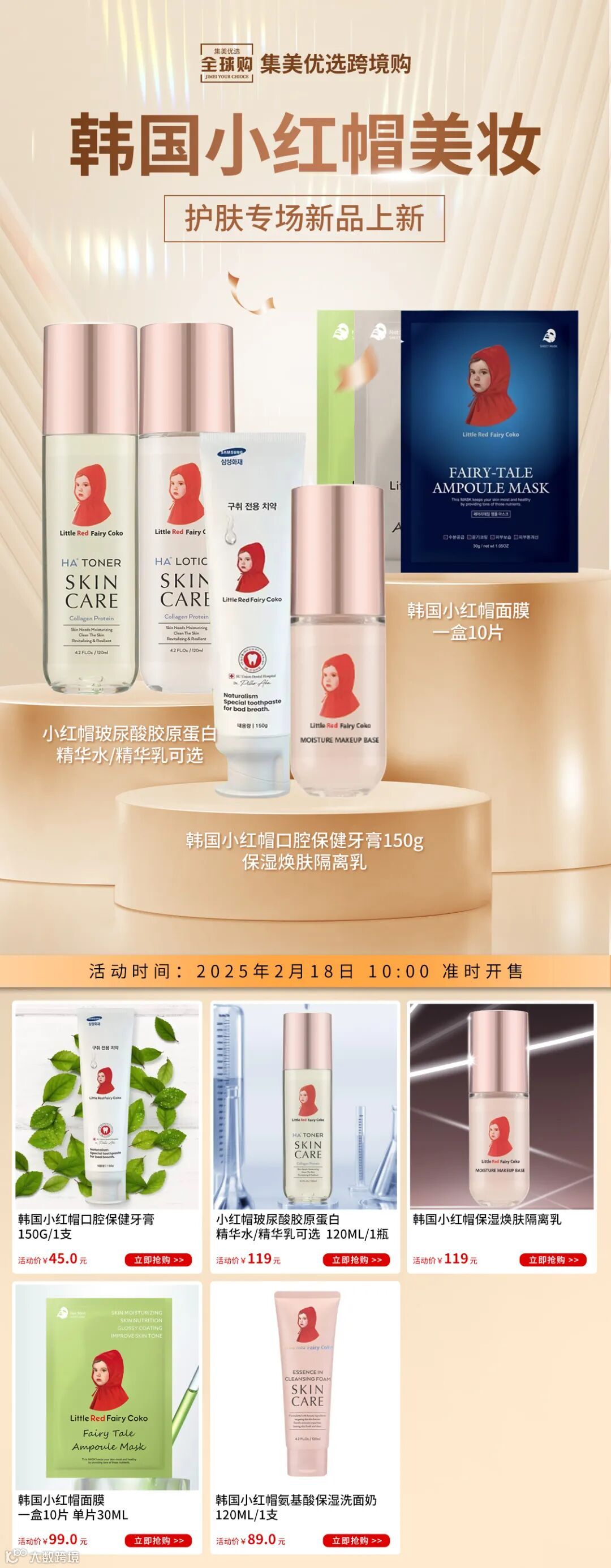 小红帽玻尿酸胶原蛋白(精华水/精华乳可选)120ml/1瓶