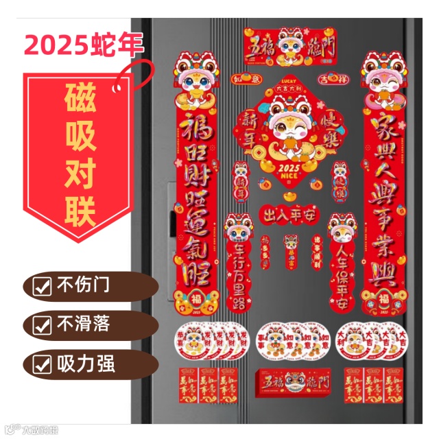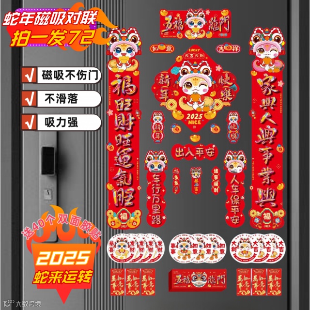 【2025蛇年国潮磁吸对联72件套】过年必备!!礼盒包装,送人自用皆可!!