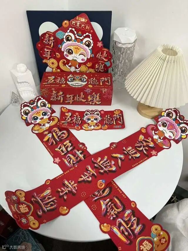 72件套【包含对联一套、冰箱贴一套、车贴小对联一套、卡通玻璃贴一套、红包一套、40个强力双面胶贴一套】
