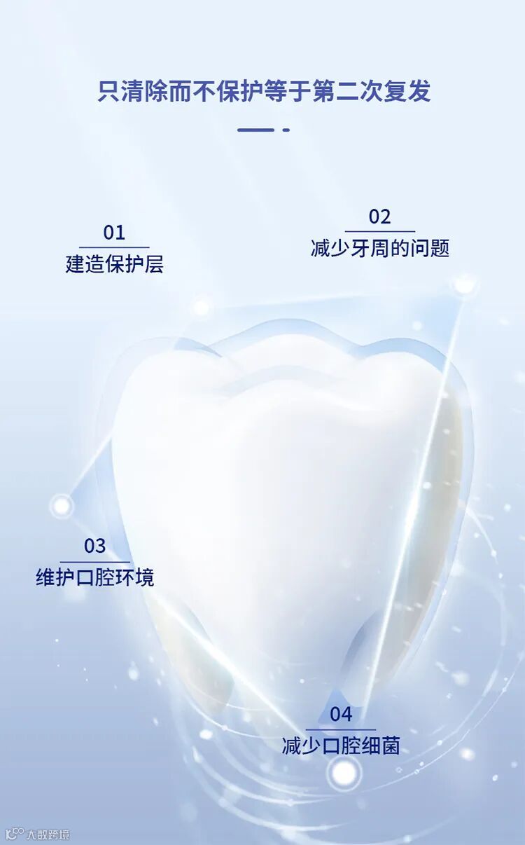 全方位快速深入包裹,坚固牙齿,保护屏障有效增强牙齿抗酸能力,促进牙齿生长和钙强化。