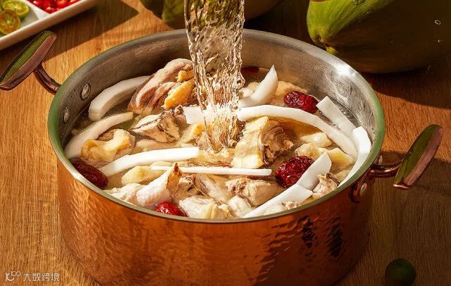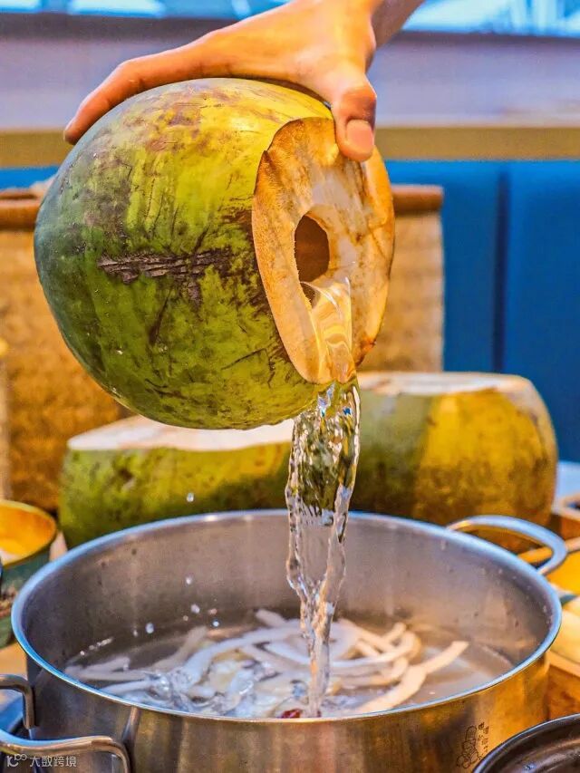 鲜甜可口的椰子水作为汤底
