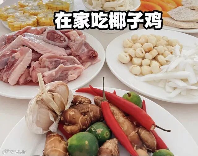【配料表】鸡肉,椰子水,椰子肉,马蹄,青桔,沙姜,指天椒,酱油